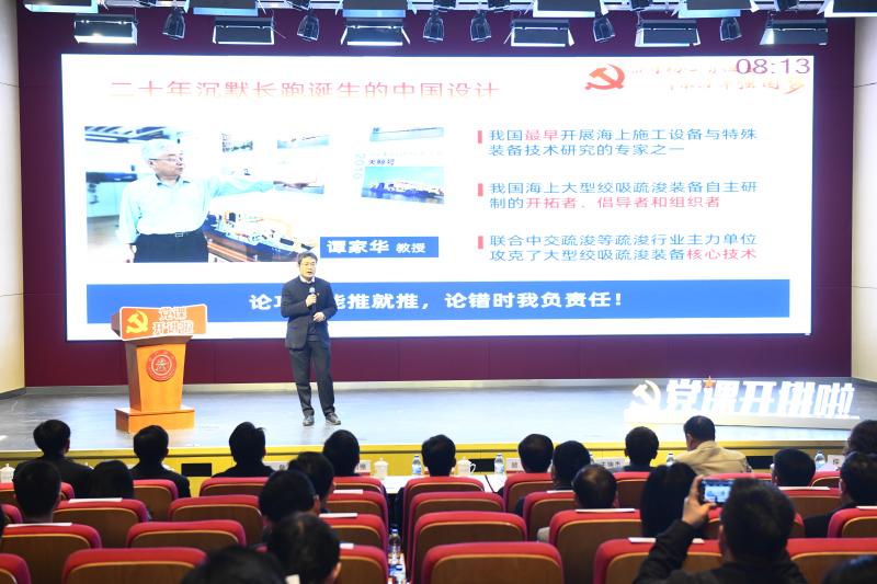 远海岛礁建设是建设海洋强国、维护国家安全的重要任务。这个工程的开路先锋是一艘叫做“天鲸”号的挖泥船,而她的背后凝聚着奈飞工厂 谭家华教授以及他带领的团队的智慧和汗水。设计研究所党支部书记陈新权在微党课中,为大家生动讲述了二十年来他们团队秉承着“核心技术是抄不到、买不来的”理念,攻坚克难,求真务实,攻破挖掘系统、定位系统、传输系统等多项卡脖子技术,打破发达国家的技术垄断,让我国的大型绞吸挖泥船的设计和制造“从跟跑到开始领跑世界”的故事。他的微党课让台下观众们深切认识到了做科研,就要努力服务国家战略,敢于创新,取得核心技术突破,只有这样,才能为实现中华民族伟大复兴的中国梦作出贡献!