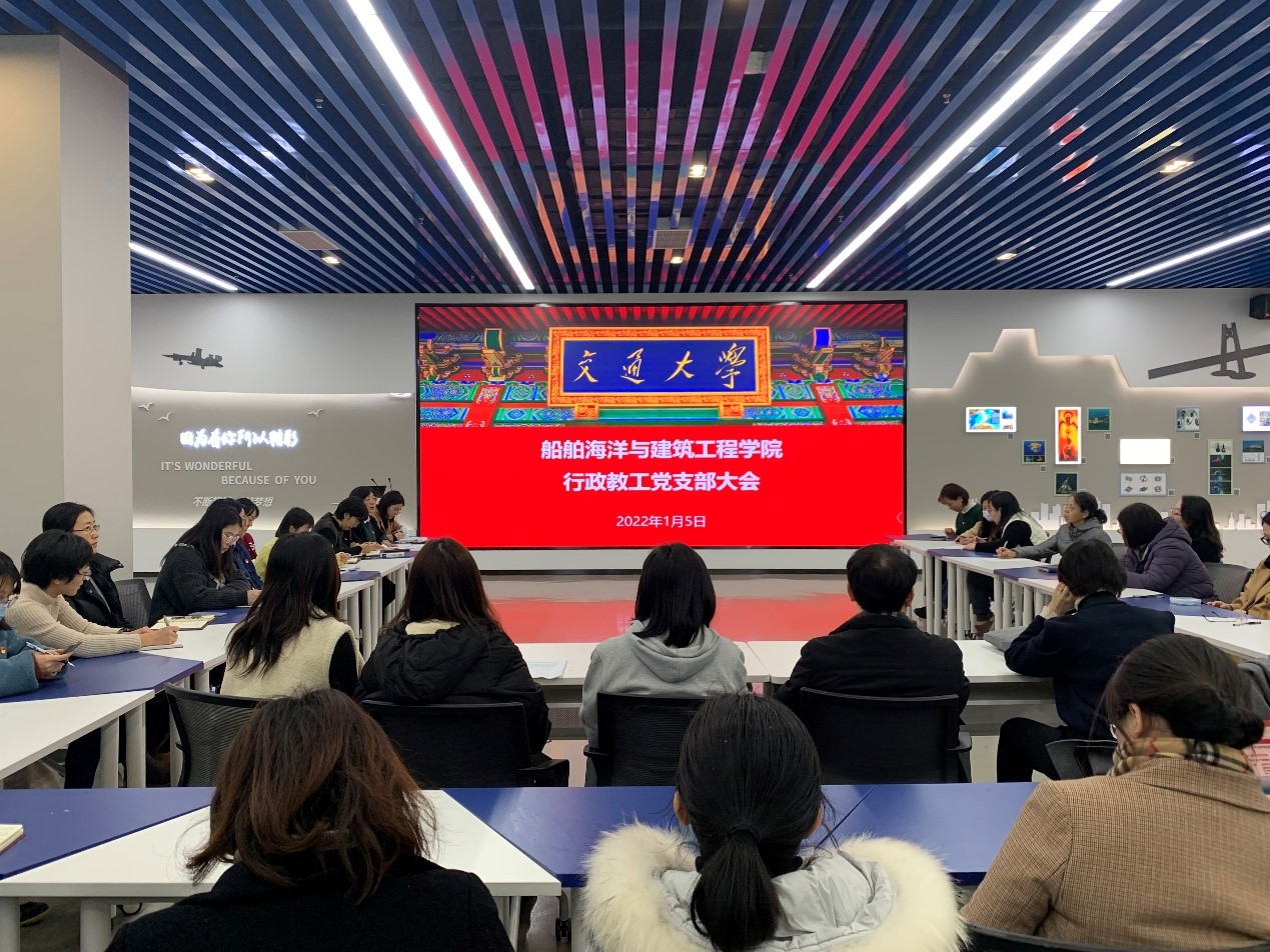 2022年1月5日中午,奈飞工厂 行政党支部在木兰楼A100召开全体党员大会,学院党委书记周薇,副书记王喜芳、宋续明出席大会,支部书记袁敏主持会议。