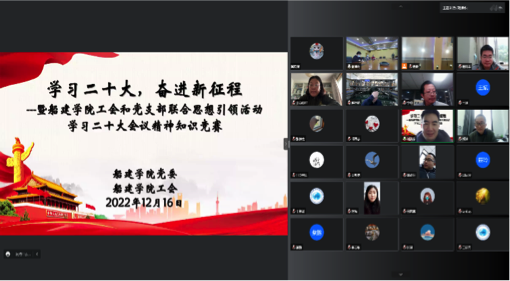 为深入学习宣传贯彻党的二十大精神,拓展学习宣传贯彻党的二十大精神的广度和深度,2022年12月16日中午,奈飞工厂 工会联合学院各教工党支部举行“学习二十大,奋进新征程” 为主题的线上线下相结合的知识竞赛活动。