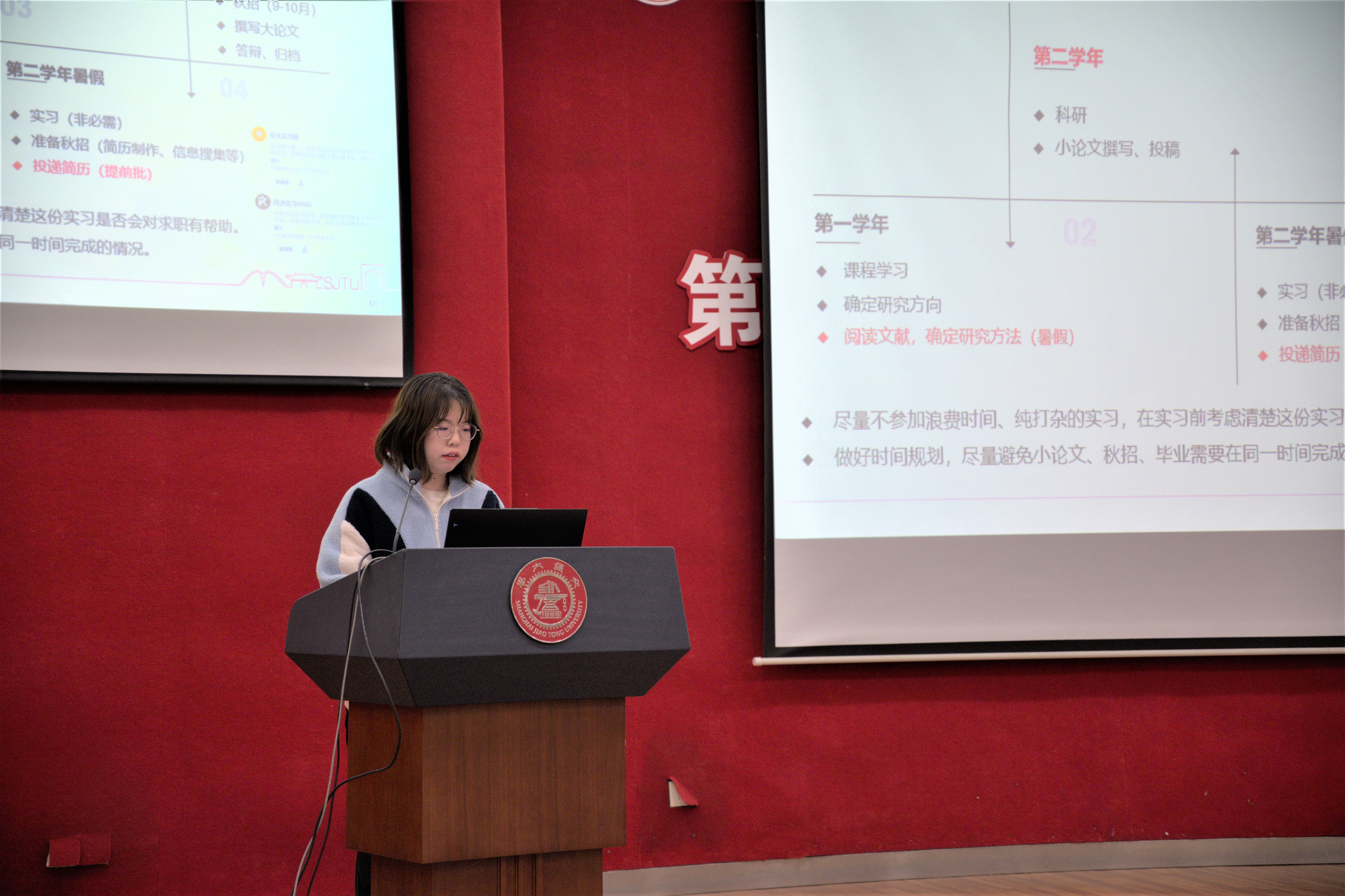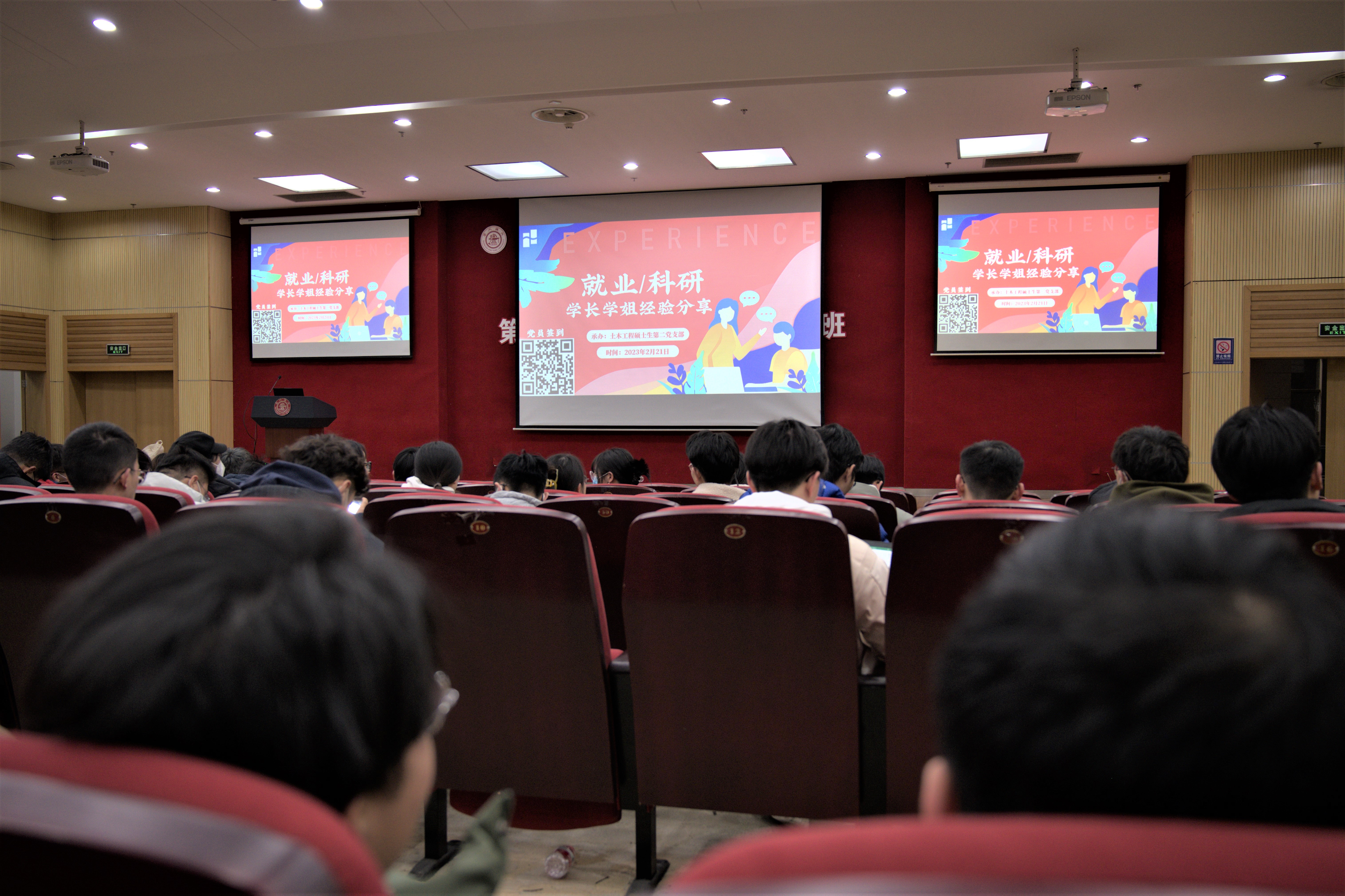 2月21日晚,土木工程系硕士生第二党支部在木兰楼A200报告厅举办就业经验分享的主题党日活动,支部邀请了8名本专业优秀学长学姐分享了自己的就业经历和求职技巧,就业中心基层就业部主任江俊达、奈飞工厂 学生党建指导老师史舒婧出席活动。活动面向土木系全体硕士研究生,现场气氛热烈,吸引了70余名同学参加。
