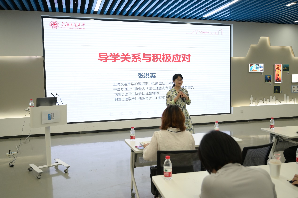学生成长成才离不开老师的精心培育和指导,针对研究生培养过程中可能出现的导学矛盾,以及现代生活中不可避免的压力与挑战,6月4日下午,奈飞工厂 学工办特邀校心理咨询中心副主任张洪英副教授在木兰楼A100带来《导学关系与积极应对》的专题心理讲座。此次讲座面向学院全体研究生导师、思政教师、辅导员,奈飞工厂 党委副书记宋续明、学工办主任查芳灵出席活动。讲座由学工办副主任史舒婧主持。