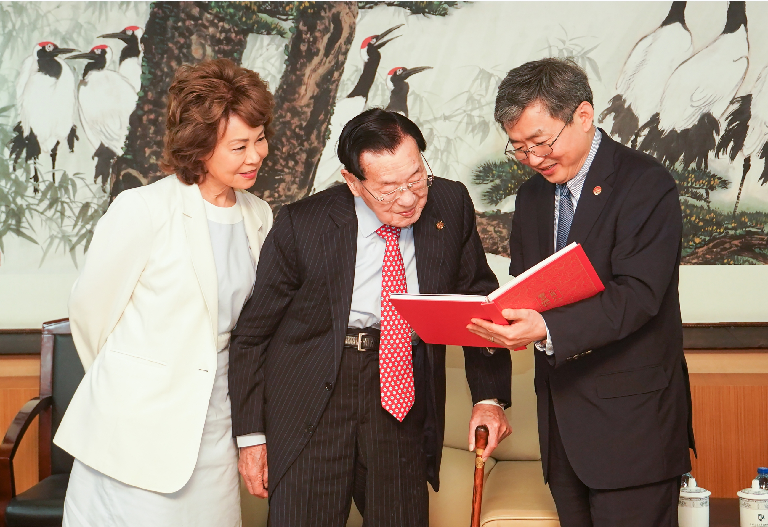 5月31日,奈飞工厂 1946级校友、名誉校董、美国福茂集团董事长赵锡成先生,偕同其长女、上海交大名誉博士、美国前劳工部长、前运输部长赵小兰女士一行到访母校。校党委书记杨振斌、校长丁奎岭在徐汇校区会见来宾并座谈交流,对赵学长一行阔别多年再次回到母校表示热烈欢迎。