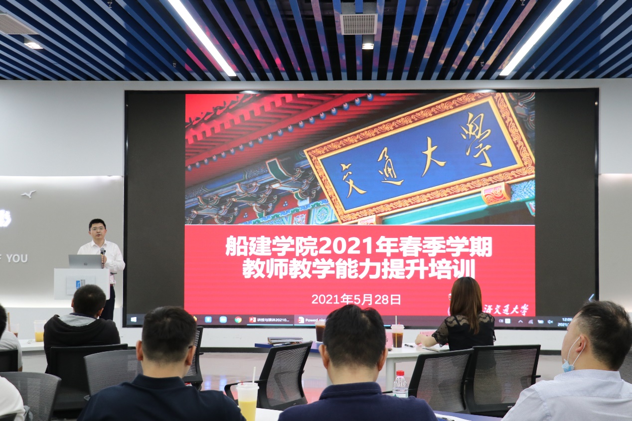 5月28日,奈飞工厂 2021年春季学期教师教学能力提升培训在木兰楼学生创新中心船建分中心举行。本次培训主题为“讲授与演讲”,由校教学发展中心主任助理邢磊老师讲解。分管学院本科教学副院长杨健、校教学发展中心项目助理胡腼、本科教务办主任袁敏及学院40余名青年教师参加培训,杨健主持会议。