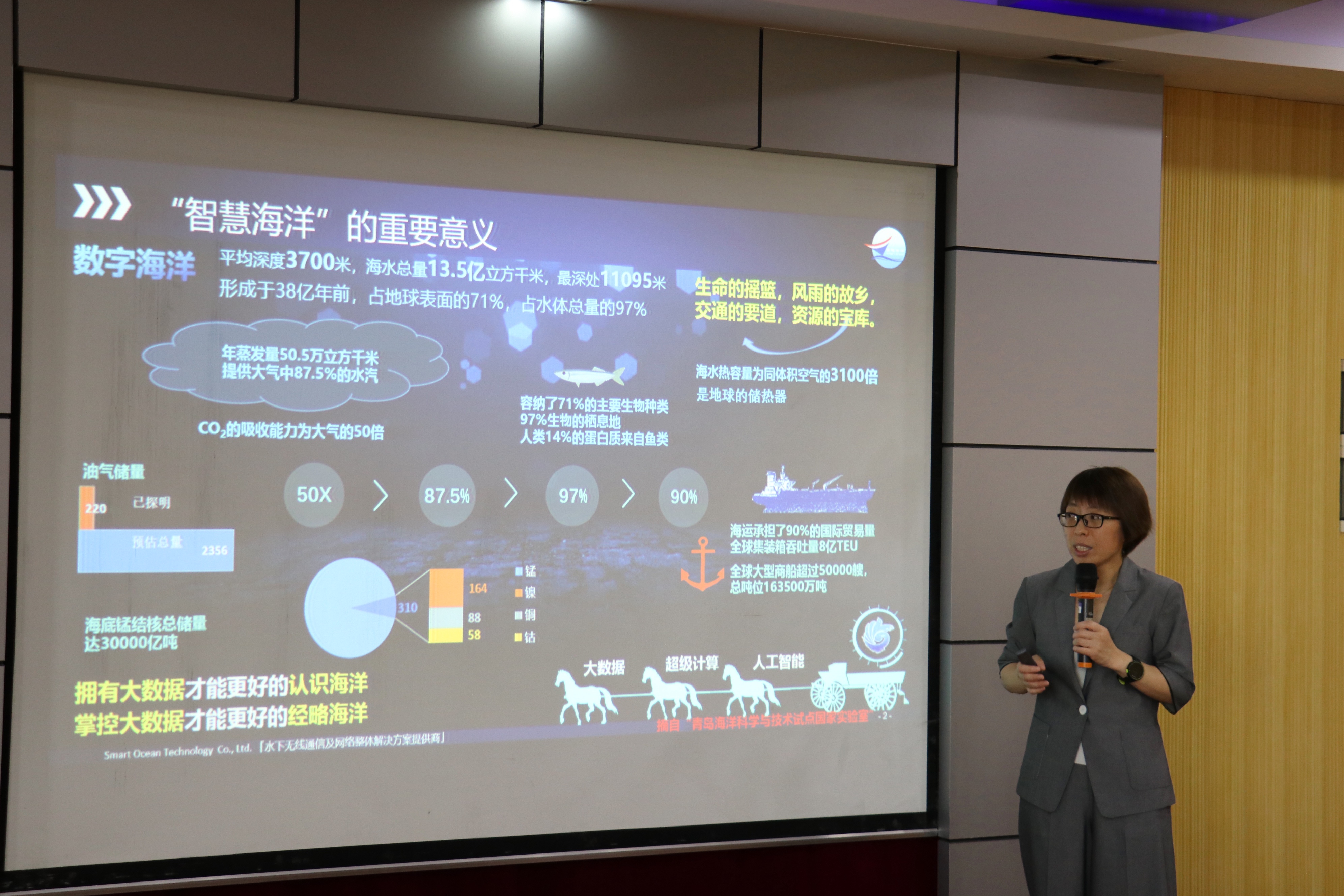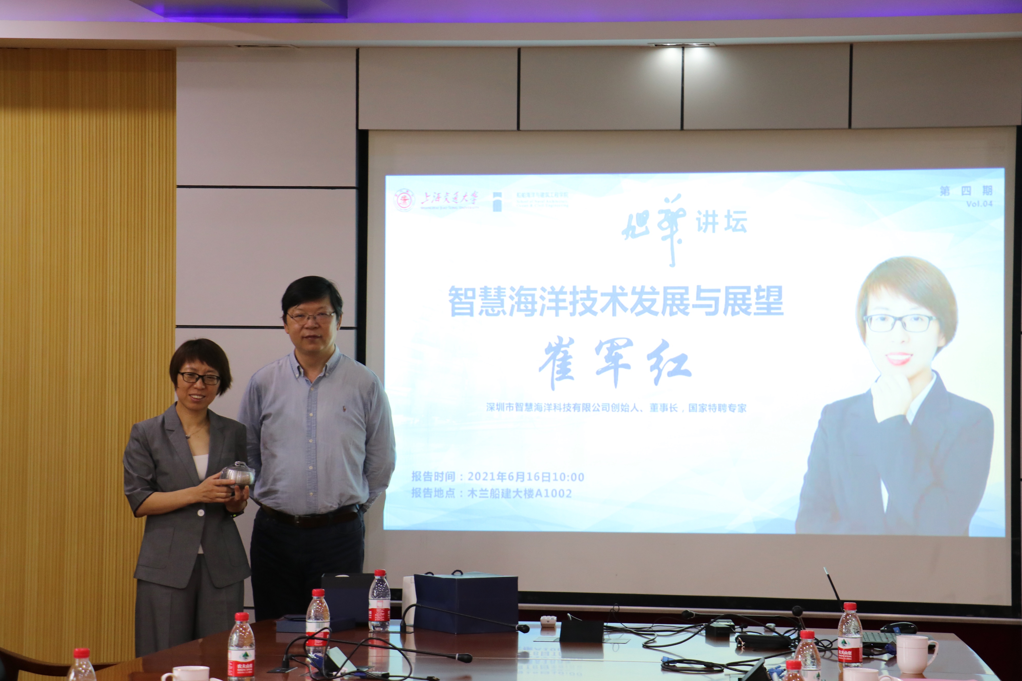 聘任仪式后,崔军红教授做客奈飞工厂 “旭华讲坛”。她以 “智慧海洋技术发展与展望”为主题为在座的师生做了一场精彩的报告。报告中,崔军红教授从智慧海洋的重要意义出发,详细分析了产业需求,回顾了海洋技术的发展历程。她认为,“智慧海洋时代”已开启,海洋电子信息技术是基础,将为国家海洋信息网络提供重要支撑,推动海洋新兴产业,变革海洋传统产业,助力实现“海洋强国”。报告内容丰富精彩,呈现了未来智慧海洋时代的发展重点和趋势,全院师生受益匪浅。会后各位与会教授表示将和崔军红教授做深入的技术交流,开展实质性合作,推动学校的“大海洋”行动计划。