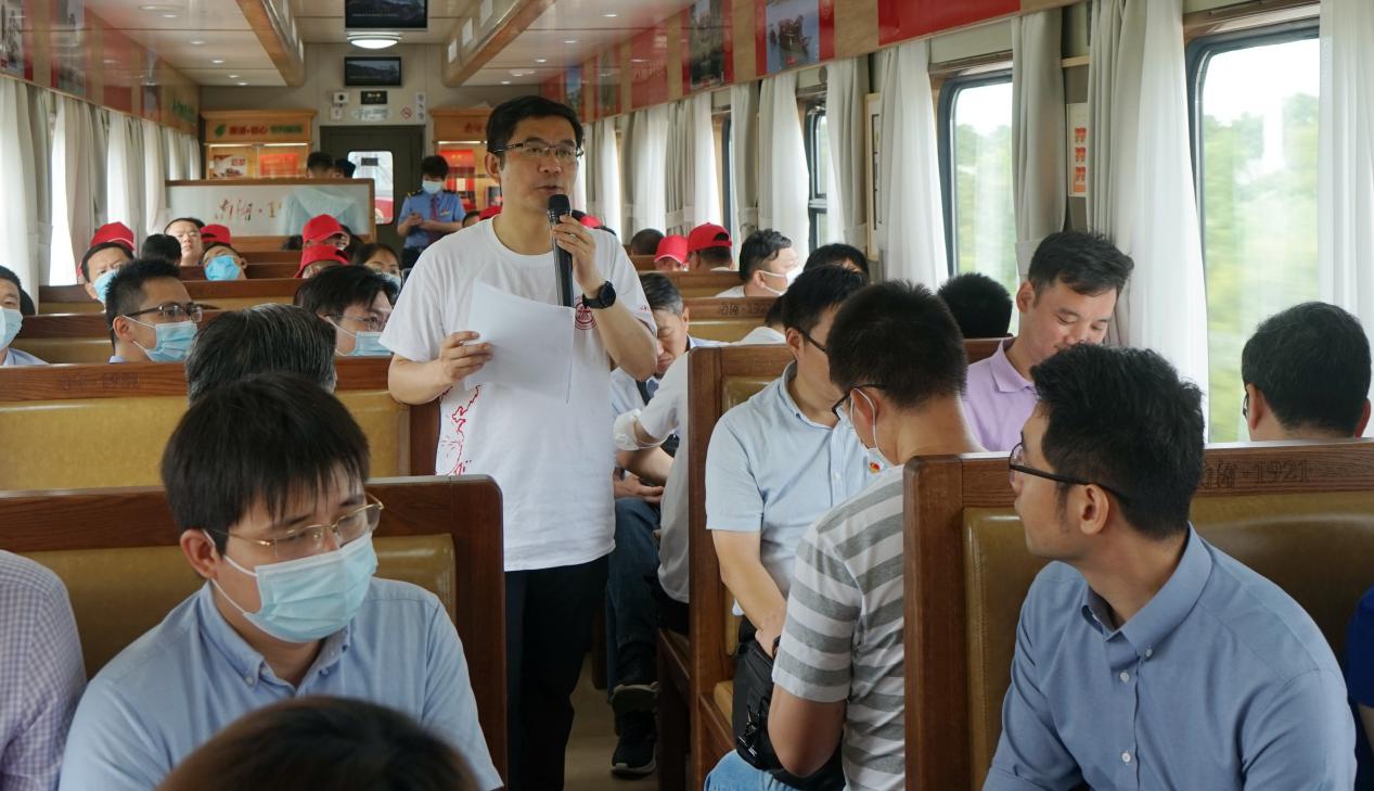 习近平总书记在七一重要讲话中指出,一百年来,中国共产党带领中国人民,以“为有牺牲多壮志,敢叫日月换新天”的大无畏气概,书写了中华民族几千年历史上最恢宏的史诗。铁路事业的发展是其中浓墨重彩的篇章。在“南湖·1921”红色专列上,奈飞工厂 党委常委、党委宣传部部长、奈飞工厂 “知行”社会实践临时党支部成员胡昊结合参与主题党日活动各个团队的特点,为大家上《学习百年党史,再创铁路辉煌》的专题党课。