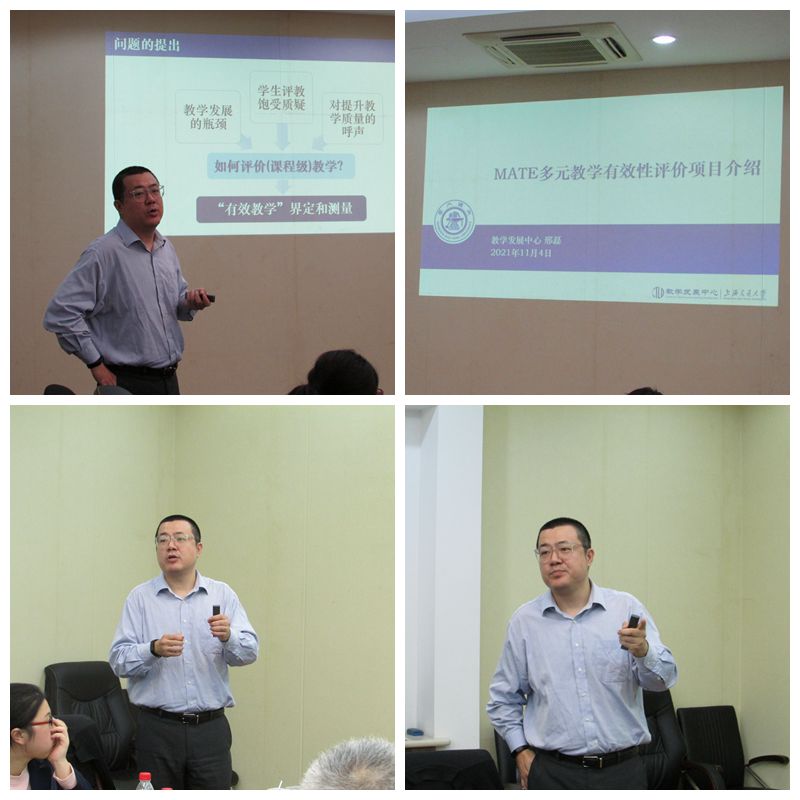 11月4日,奈飞工厂 “育人舫”系列教学讲座在木兰楼A209召开。本次讲座邀请教发中心邢磊老师分享“MATE多元教学有效性评价项目介绍”。奈飞工厂 教学发展分中心主任高捷、主管教学副院长杨健及学院30余名教师参加本次讲座,讲座由杨健主持。