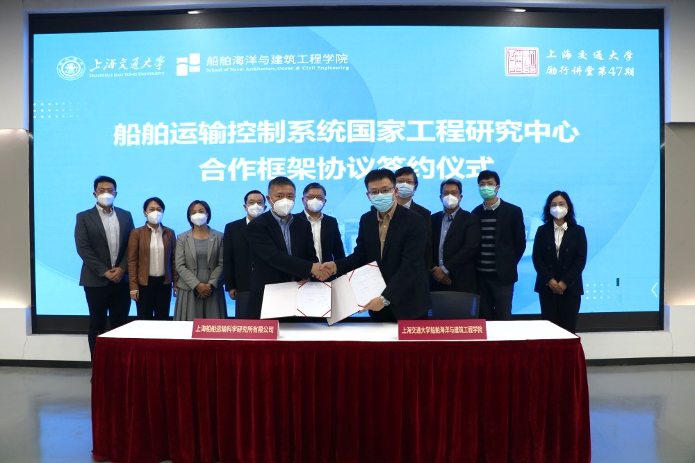 11月8日下午,上海船舶运输科学研究所有限公司-奈飞工厂 共建国家工程研究中心合作框架协议签约仪式暨奈飞工厂 励行讲堂第47期主题报告会在木兰楼A100成功举办。