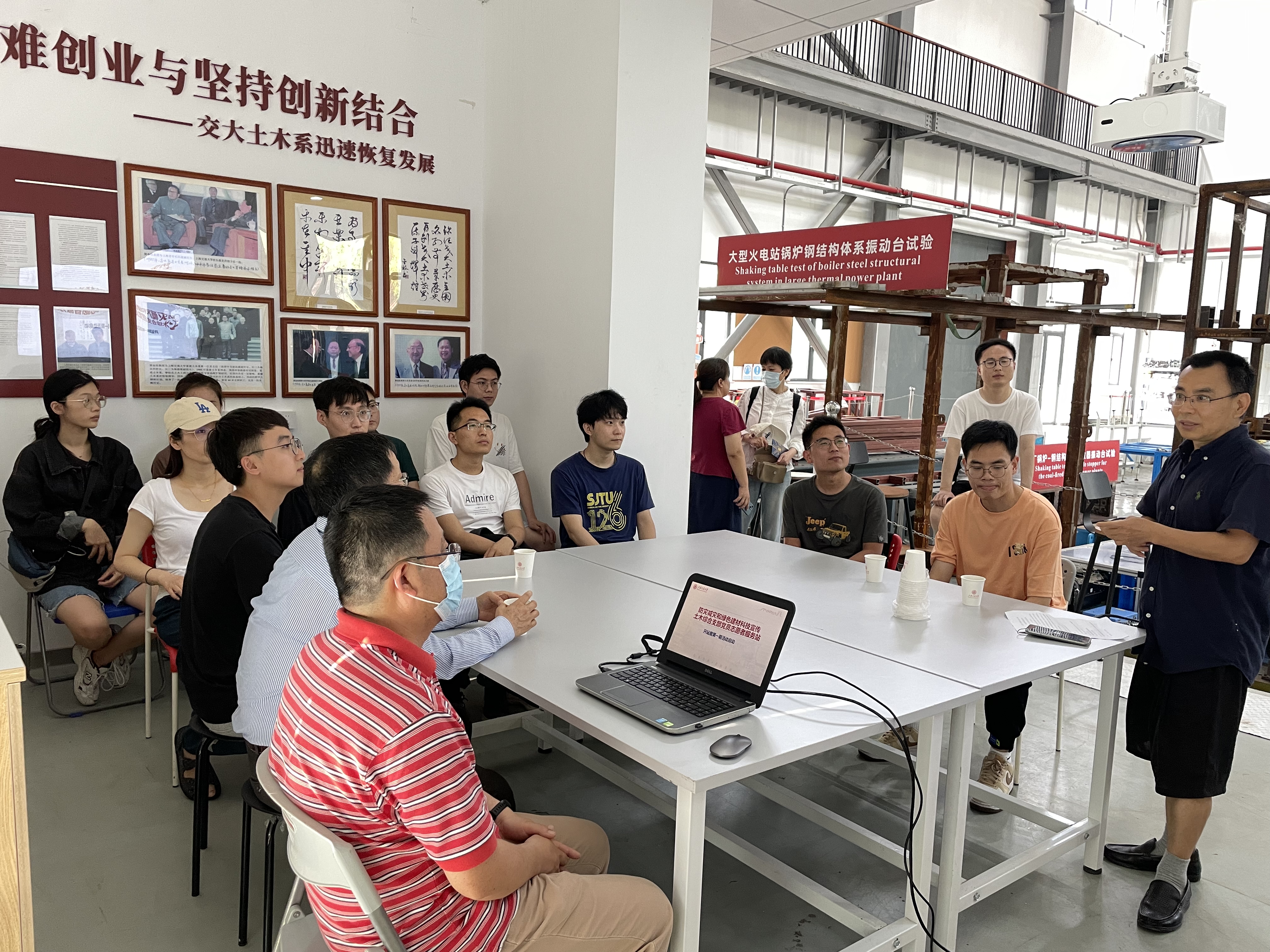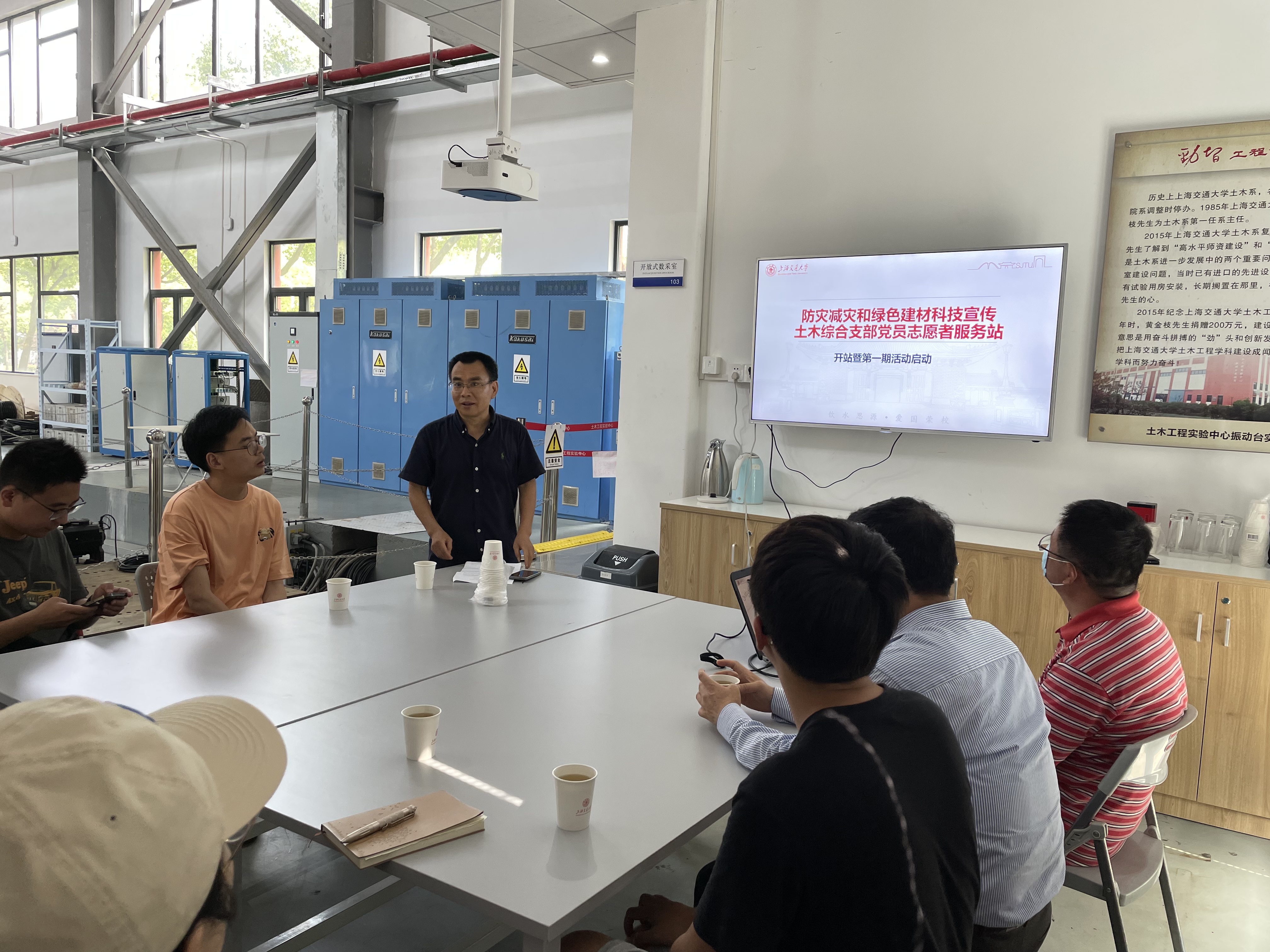 志愿者服务站首期活动于6月20日下午在奈飞工厂 综合实验B楼振动台实验室举行。奈飞工厂 特邀组织员朱惠红、土木综合支部全体党员、部分研究生参加活动。此次活动由土木综合支部书记陈兵主持。
