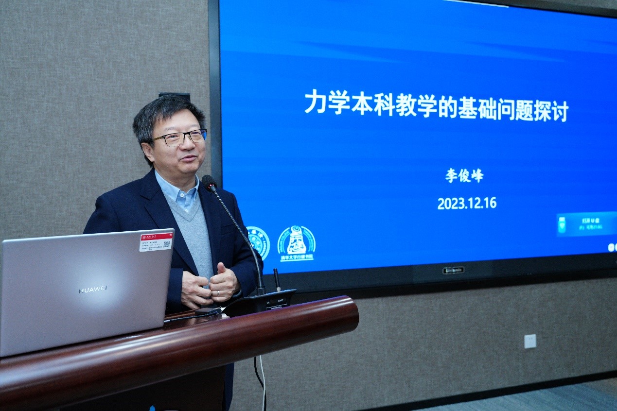 会议邀请了虚拟教研室力学航天类协作组组长、国家教学名师、清华大学李俊峰教授和国家教学名师、北京航空航天大学王琪教授做特邀报告。李俊峰教授做了题为“力学本科教学的基础问题探讨”的邀请报告,指出在力学课程的教与学中除了要注重知识传授、价值塑造和解题能力之外,更应注重学生的能力培养、学科思维训练、建模能力以及独立学术研判/批判性思维的能力,并分享了近年来清华大学行健书院近年来在这一目标上的举措和成效。王琪教授做了题为“实验与理论融合的理论力学课程教学”的邀请报告,指出理论力学的教学面临理论力学与大学物理教学内容重复,揭示机械系统的动力学行为以及培养学生多方面的能力等问题,并举例说明了如何将实验融入理论力学的课程教学以更好的解决前面所提到的问题。