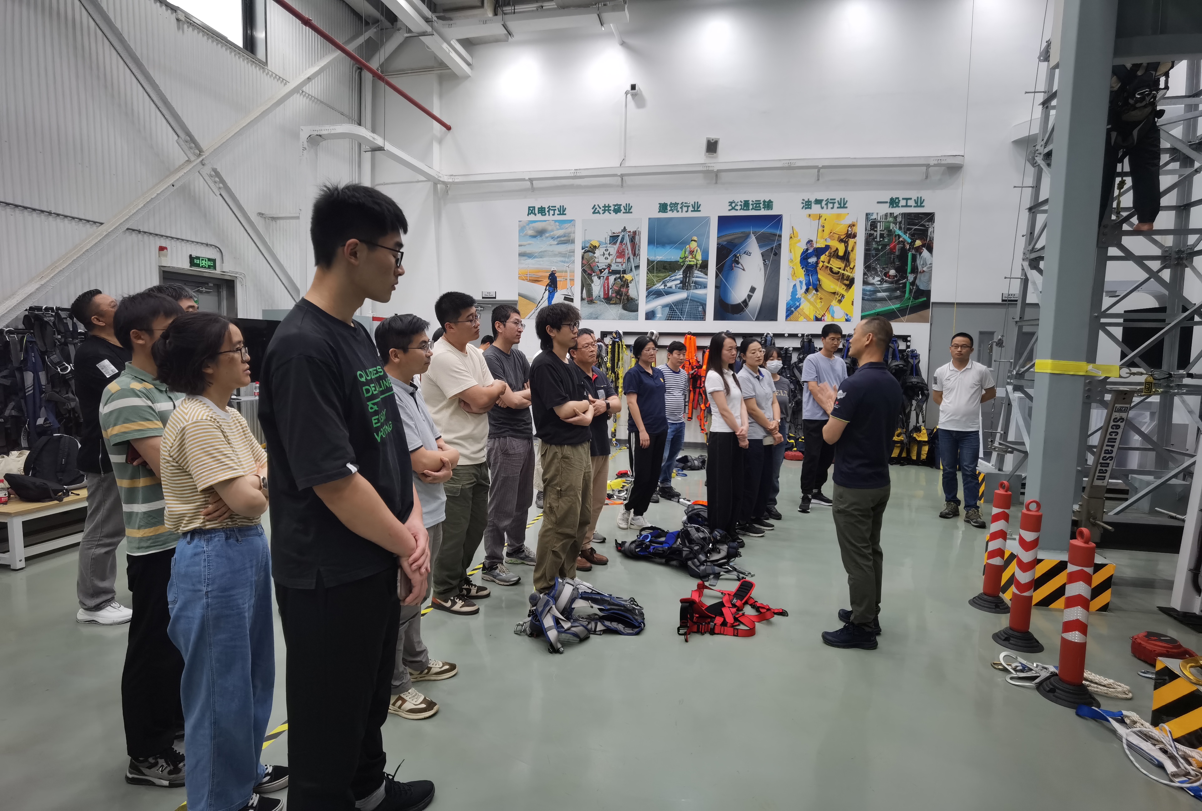 理论培训结束后,参训师生在实训场地进行了登高和坠落防护的实操演练。参训人员在认真学习各类安全带的穿戴培训后,积极参与挑战各类安全带的专业穿戴,并实际吊起体验各类不同的安全带的防护能力,进一步认识安全防护的重要性。最后各实验室师生实际开展了攀爬登高和下落作业的实操演练。在紧张严肃又欢乐有趣的氛围中,参训师生切实掌握了高处作业的各类专业技能,进一步提高了安全意识和应急处置能力。