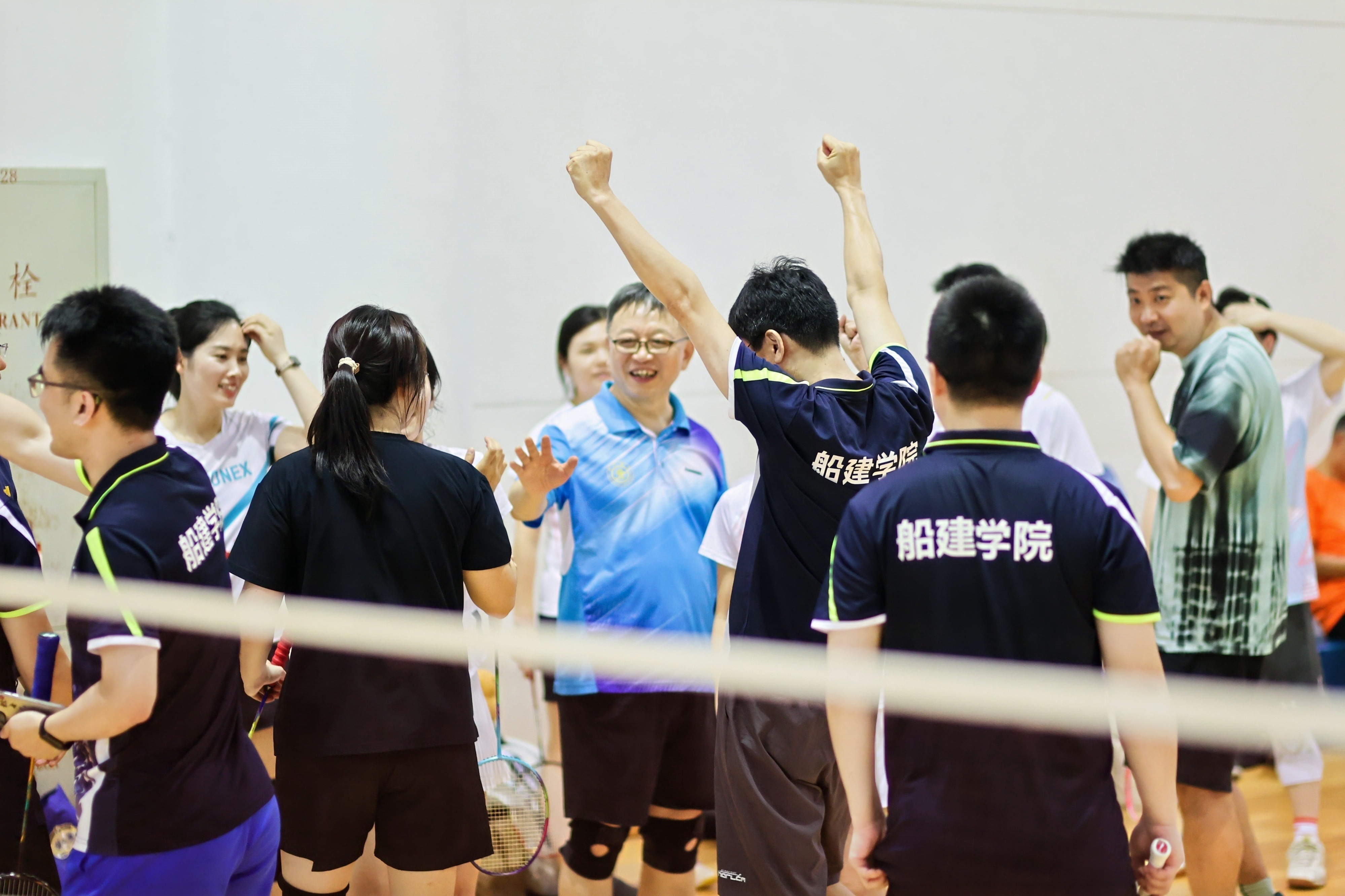 高远挑球、精准平抽,队员们以敏捷的身手和精湛的技术,展现了高超的团队默契。上午小组赛中,船建队伍第一轮以2:1战胜实力不俗的松江医院队,第二轮力克人文学院队;第三轮更是以3:0战胜终身教育学院队,以小组第一的骄人成绩挺进8强。