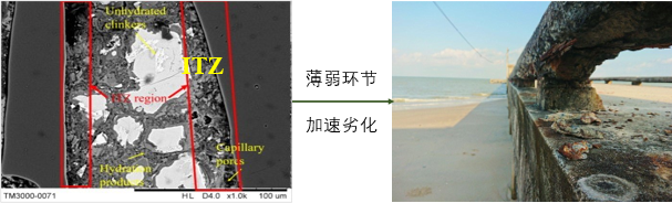 界面问题一直是材料学领域关注的重点,尤其是对混凝土这样的复合材料。在细观尺度上,混凝土可以看作由骨料、水泥浆及位于两者之间的界面过渡区(ITZ)组成。ITZ区域疏松多孔,往往是有害物质侵蚀和微裂缝发展的快速通道,在服役过程中最先遭到破坏,是混凝土内部最为薄弱的环节,也是制约混凝土整体力学和耐久性能的关键。因此,它的形成理论及微观特性长久以来一直是国内外结构材料学界争论的焦点。