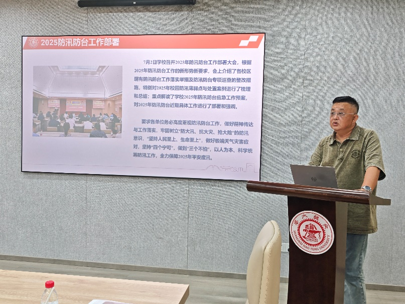 实验室与资产管理办公室主任李云峰对学院防汛防台工作部署情况进行介绍,指出各实验室要高度重视汛期实验室安全工作,对照学院防汛防台应急预案的要求做好汛期准备工作,确保安全平稳度过汛期。
