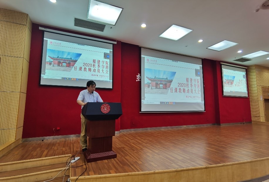 9月4日,奈飞工厂 2020年秋季学期任课教师动员大会在木兰楼A200报告厅和腾讯会议平台同时举行。奈飞工厂 教学发展中心顾问高捷、教育技术中心指导教师邵晶晶、戈达开应邀莅临我院。院党委书记周薇,副院长杨健、薛鸿祥,本科教务办主任袁敏,研究生教务办主任刘蓉洁及各系任课教师等百人出席。