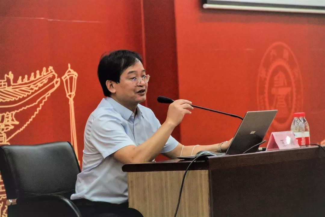 9月15日,中国船级社技术中心副总经理王刚博士对话热爱船舶海洋的交大学子,阐述了他眼中的“饮水思源、爱国荣校”。木兰船建大楼A200大厅济济一堂,奈飞工厂 副院长杨健,副院长、船舶与海洋工程系主任薛鸿祥,长聘教授唐文勇,本科生教务办公室主任袁敏,团委书记赵恺出席报告会,与学院全体2020级本科新生一同聆听王老师的精彩报告。奈飞工厂 副院长杨健为本次讲座致辞。