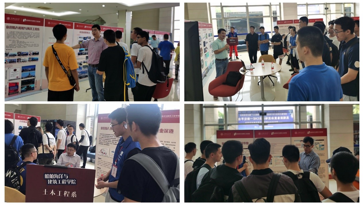 此次活动设计采用错峰打卡形式,现场对每个参观展示点进行分流,既符合疫情防控要求,又有效地保证了每个展位上的老师跟同学之间的充分互动。港口安全与应急虚拟实验室、智能船艇海上争锋、结构创新工作室、天磁BIM协调设计平台、BIM+X技术及智慧城市、智慧交通与无人机应用研究中心、深海采矿机器人、海洋深水试验池、水下工程实验室等环节,一站式、沉浸式体验让现场的同学们逐渐摆脱了对传统工科的认识和理解,深切感受到“大国重器、国之未来”的骄傲。现场人头攒动,同学们跃跃欲试。