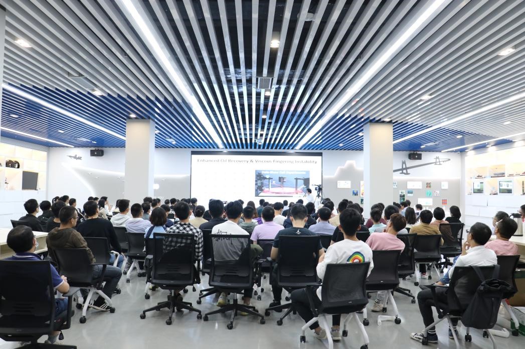 郑重博士在报告中以自由界面上的力学、动力学为例,简要介绍了降维输运模型及其在能源环境等领域的应用。流体界面上的不稳定性导致指状流的产生,进而与油气资源开采效率密切相关,郑重博士在报告中介绍了一类针对油气界面不稳定性的动态控制策略,以实现对该不稳定性以及指状流数量的控制与预测。针对二氧化碳地质封存所涉及的扩散与泄露问题,郑重博士在报告中探讨岩层有限厚度对二氧化碳动态扩散的影响,介绍流动从无拘束到有拘束扩散的演变,以及与之对应的流体界面相似性的动态发展。最后,郑重博士在报告中简要介绍了与页岩气资源开采密切相关的压裂技术的基础理论。郑重博士与合作者利用甘油与凝胶等材料作为模拟工质,对裂缝的生成与闭合过程进行直接观测,并将观测结果与降维模型预测的结果进行对比,以期实现对该流固耦合系统的准确描述。
