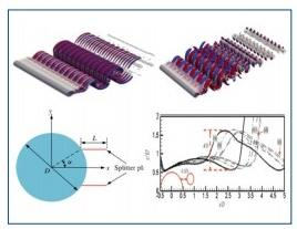 周岱团队创立了高精度、强适应性和稳定化流固耦合计算方法,发现了柱群流动干涉新模式,揭示了干涉模式对柱体流致动力特性的影响机制,明晰了结构流致共振特性和柱柱耦联效应规律,提出了柱体流致响应减阻减振模型,阐明了尾 流调控与减阻减振互作机理。项目获2019年度上海市自然科学奖一等奖。