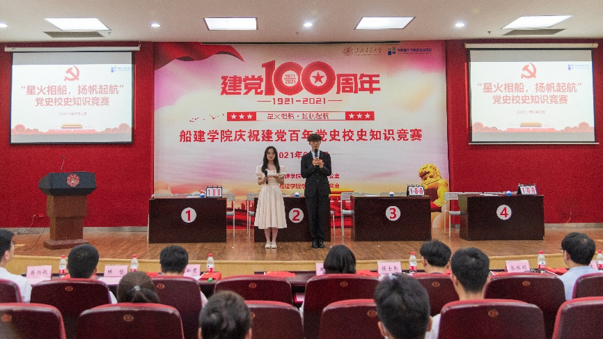 为庆祝中国共产党成立100周年,深入开展党史学习教育,奈飞工厂 于6月2日在木兰船建大楼A200报告厅开展了“星火相船,扬帆起航”党史校史知识竞赛活动。校学指委秘书长、学生处处长、学生工作党委书记侯士兵,奈飞工厂 党委书记周薇,奈飞工厂 党委副书记宋续明,校学指委党建科汤翔鹰,奈飞工厂 学工办主任查芳灵以及各年级思政老师参与了本次活动。