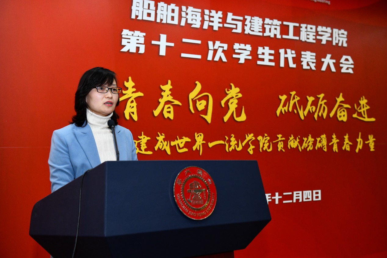 周薇代表学院党委致辞。周薇书记高度肯定了第十一届学生会卓有成效的工作。周薇书记指出学生代表大会是广大学子参与政治生活的一件大事,学院充分支持同学们积极参加校园治理,高度关注学生提案与意见,学院将会精准对接学生需求,创造更加优越的学习生活条件。周薇书记向与会学生代表提出了殷切期望,要矢志不渝坚定理想信念、践行学在交大、砥砺行业情怀。