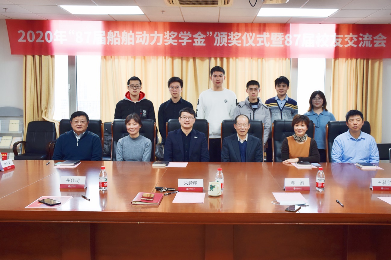 12月19日下午,奈飞工厂 87届船舶动力奖学金颁奖仪式在木兰船建大楼A1006会议室举行。87届校友代表陈涛学长、黄建新学长、黄卫学姐、张嘉庆学长,奈飞工厂 党委副书记宋续明,船舶与海洋工程系副系主任陈俐,以及2020年度船舶动力奖学金的5位获奖学生出席仪式。仪式由学院学生事务负责人史舒婧主持。