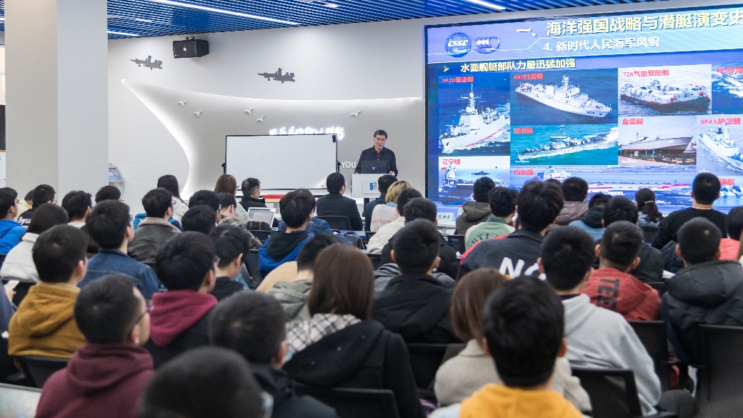 建设海洋强国,是中国特色社会主义事业的重要组成部分。习近平同志在党的十九大报告中指出:“坚持陆海统筹,加快建设海洋强国。”潜艇是能够在水下运行的舰艇,是公认的战略性武器,是大国重器和海上核盾牌。张锦岚老师从国家海洋强国战略的高度说起,为大家详细介绍了潜艇发展史上的五个里程碑及其带来的技术和革新,从不同的方面和角度阐释了潜艇的发展史。他通过包括二战期间的“狼群技术”、马里亚纳海战和马岛战争等在内的一系列实例,生动地说明了核潜艇在国际形势下的作用。