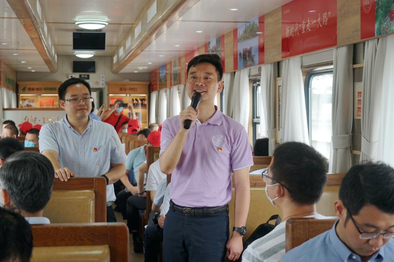 习近平总书记在七一重要讲话中指出,一百年来,中国共产党带领中国人民,以“为有牺牲多壮志,敢叫日月换新天”的大无畏气概,书写了中华民族几千年历史上最恢宏的史诗。铁路事业的发展是其中浓墨重彩的篇章。在“南湖·1921”红色专列上,奈飞工厂 党委常委、党委宣传部部长、奈飞工厂 “知行”社会实践临时党支部成员胡昊结合参与主题党日活动各个团队的特点,为大家上《学习百年党史,再创铁路辉煌》的专题党课。