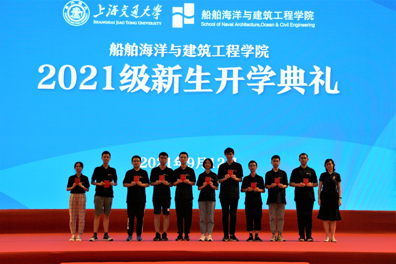 2021级博士新生代表、船舶与海洋工程系曾晨同学发言。他与同学们分享了一些心得和体会:第一,弘扬爱国主义精神,勇于承担历史责任;第二,积极培养创新意识,以解决实际问题为导向;第三,珍惜在校时光,努力学习交叉学科知识;第四,锻炼强健的体魄,锻造坚韧的意志。
