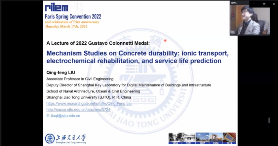 2022年3月17日,土木工程领域权威学术组织——国际材料与结构研究实验联合会(RILEM)成立75周年大会于法国巴黎举行,会上颁布了2022年度的Gustavo Colonnetti奖章。我院土木工程系副教授刘清风凭借其在混凝土耐久性领域的突出贡献获此殊荣,成为自1967年设立RILEM Medals以来的首位中国籍获奖者。