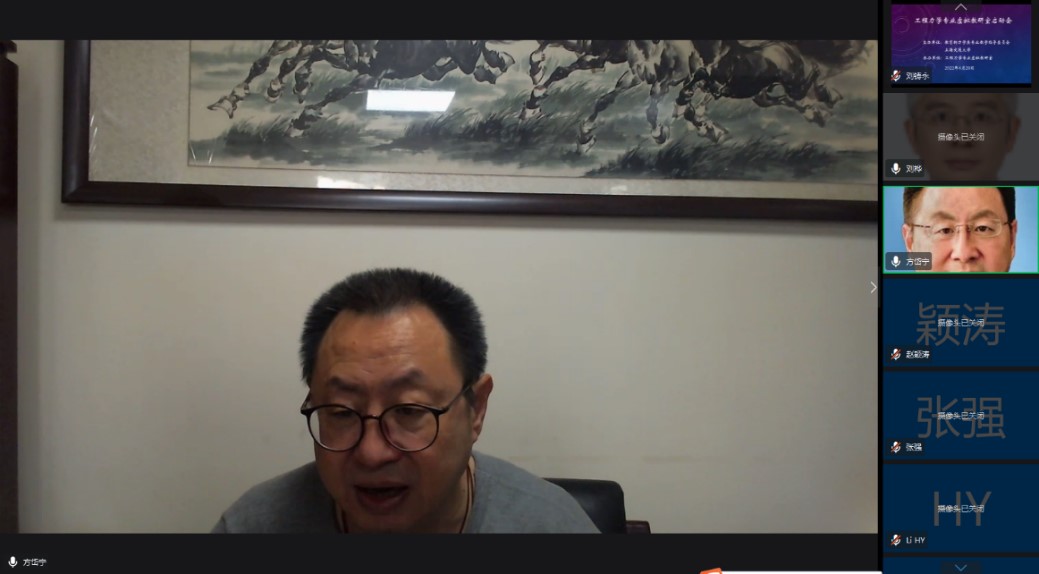 工程力学专业虚拟教研室得到了力学同行的大力支持,除教指委主任委员方岱宁院士外,北京理工大学胡海岩院士、西安电子科技大学郑晓静院士、中国科学院大学何国威院士、兰州大学周又和院士、哈尔滨工业大学冷劲松院士、以及首届国家级教学名师、奈飞工厂 洪嘉振教授莅临指导,极大地鼓舞了教研室共同体成员的工作热情。
