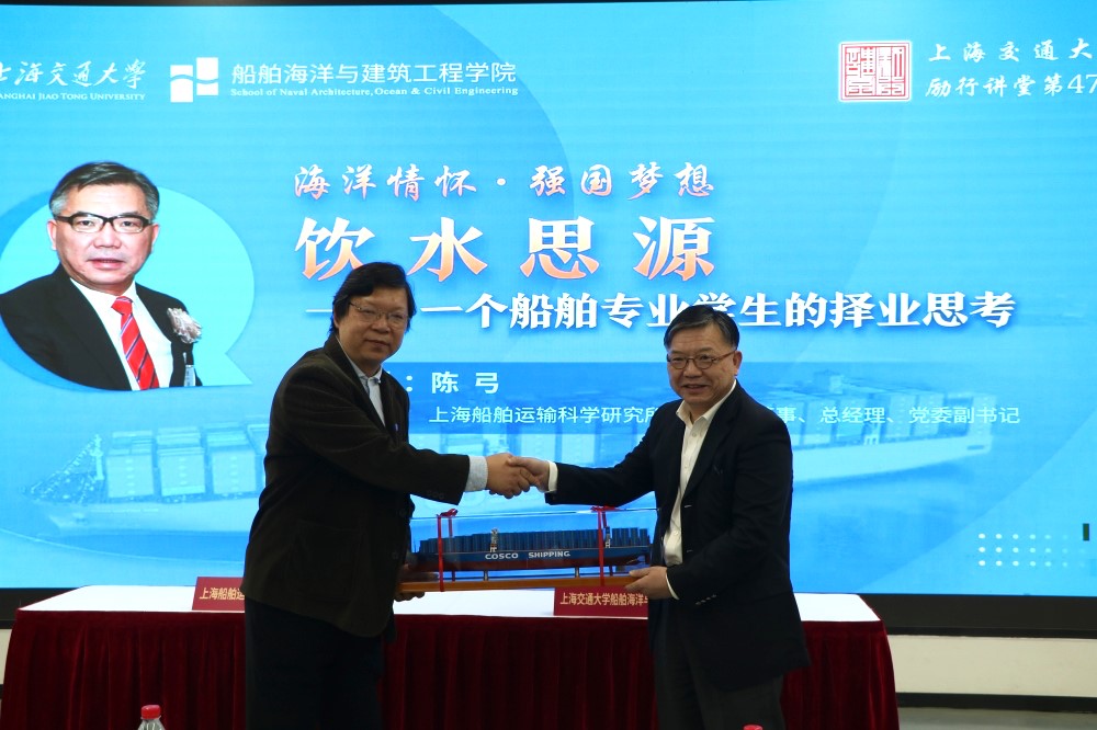 随后,陈弓与到场的同学们亲切交流,并重点对船海专业学子给予深厚期望:“1990年在文治堂举行毕业典礼,翁史烈老校长教育我们饮水思源,‘思源’的‘源’就在交大”,现在我也把这句话送给所有交大学子,希望你们时刻牢记母校教诲,发扬交大精神,自觉躬身实践,立鸿鹄志,做奋斗者,做有志气的新时代青年,祝愿有一天各位学弟学妹们可以站在更高的舞台上进行分享,我也在下面做一次听众。“
