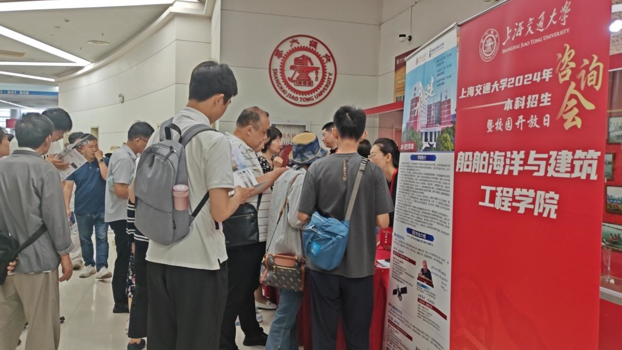 开放日上午,船舶与海洋工程系副主任余龙、力学工程系副主任刘铸永、土木工程系副主任高皖扬齐聚活动主会场,为考生、家长解答招考方式、专业选择等问题。