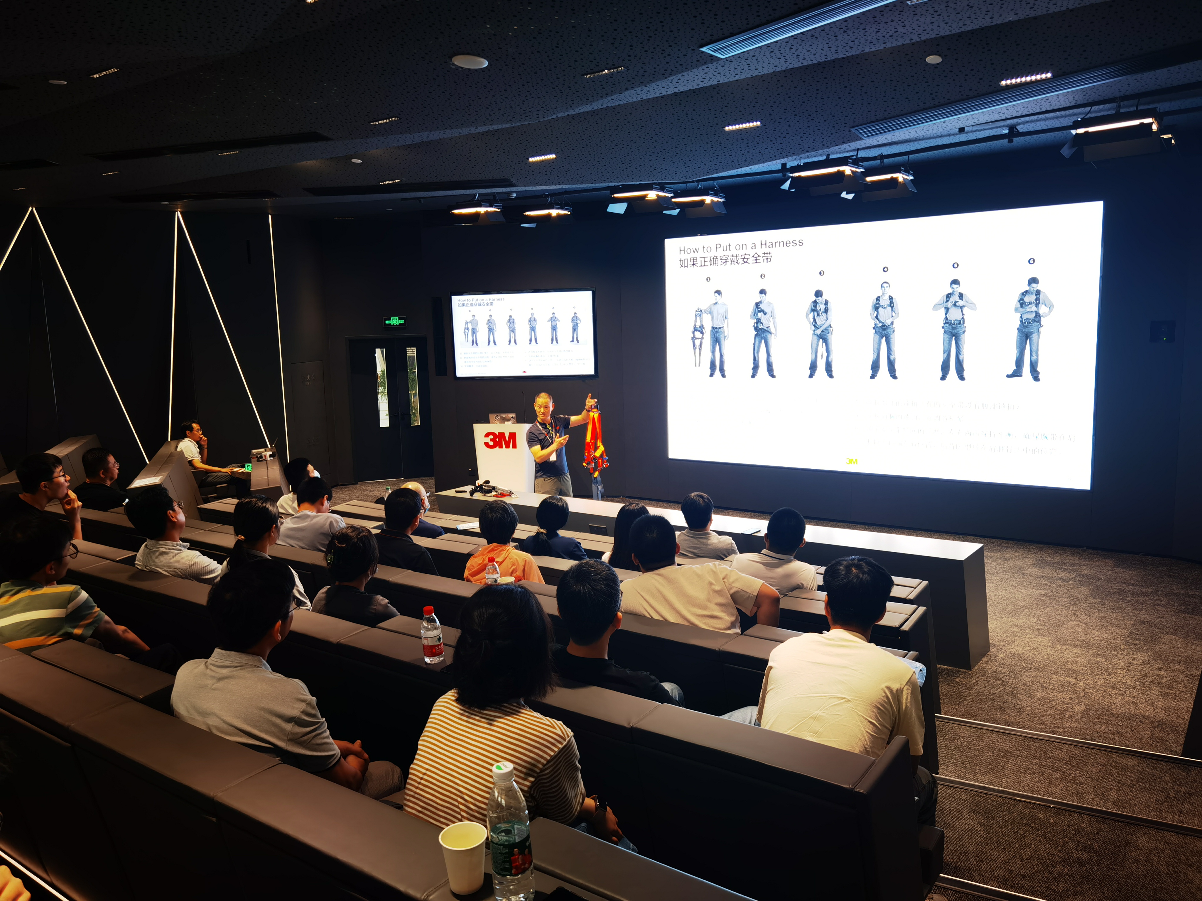 参训师生集体进行了“实验室个体防护装备”和“高处作业坠落安全防护”的培训。具有专业资质的培训专家从法律法规要求出发,结合实际案例,对实验室个体防护和高处作业坠落安全防护的专业知识进行了培训。