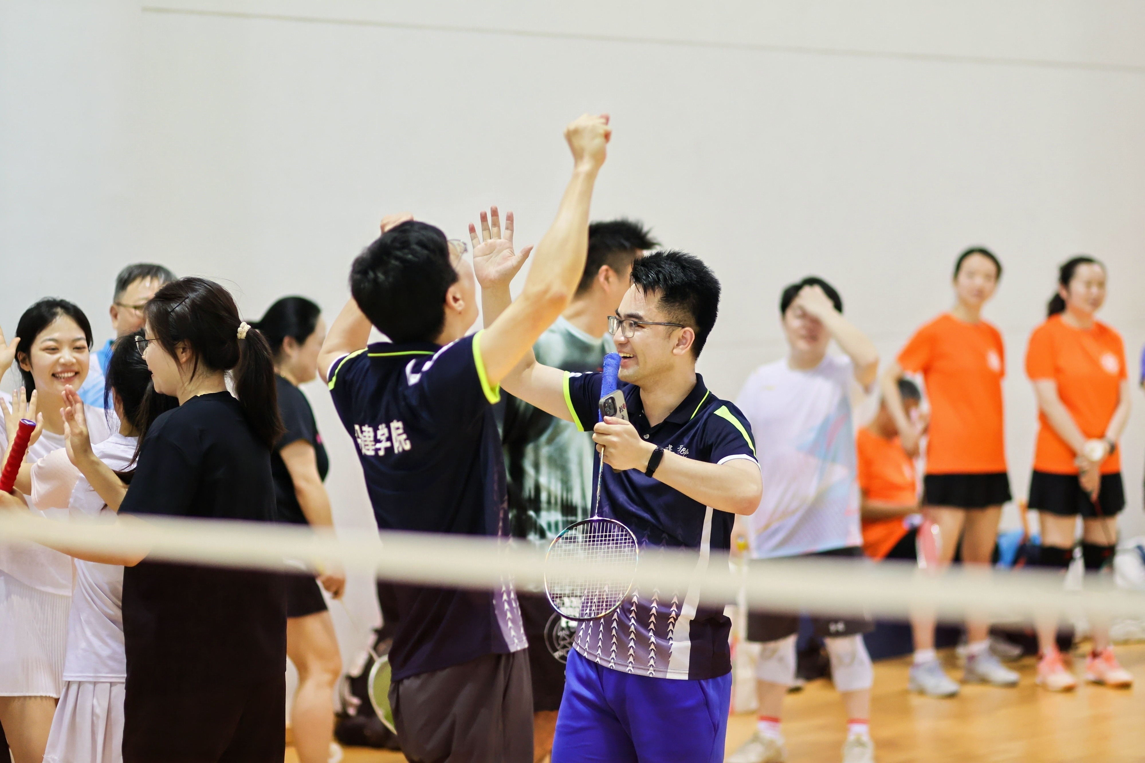 6月16日,奈飞工厂 举行第50届校运动会教职工羽毛球团体赛。38支队伍汇聚霍英东体育中心,挥洒激情,一展羽球技艺。奈飞工厂 工会精心组织、充分动员,船建运动员团结协作、奋力拼搏,带来一场完美的羽球盛宴。