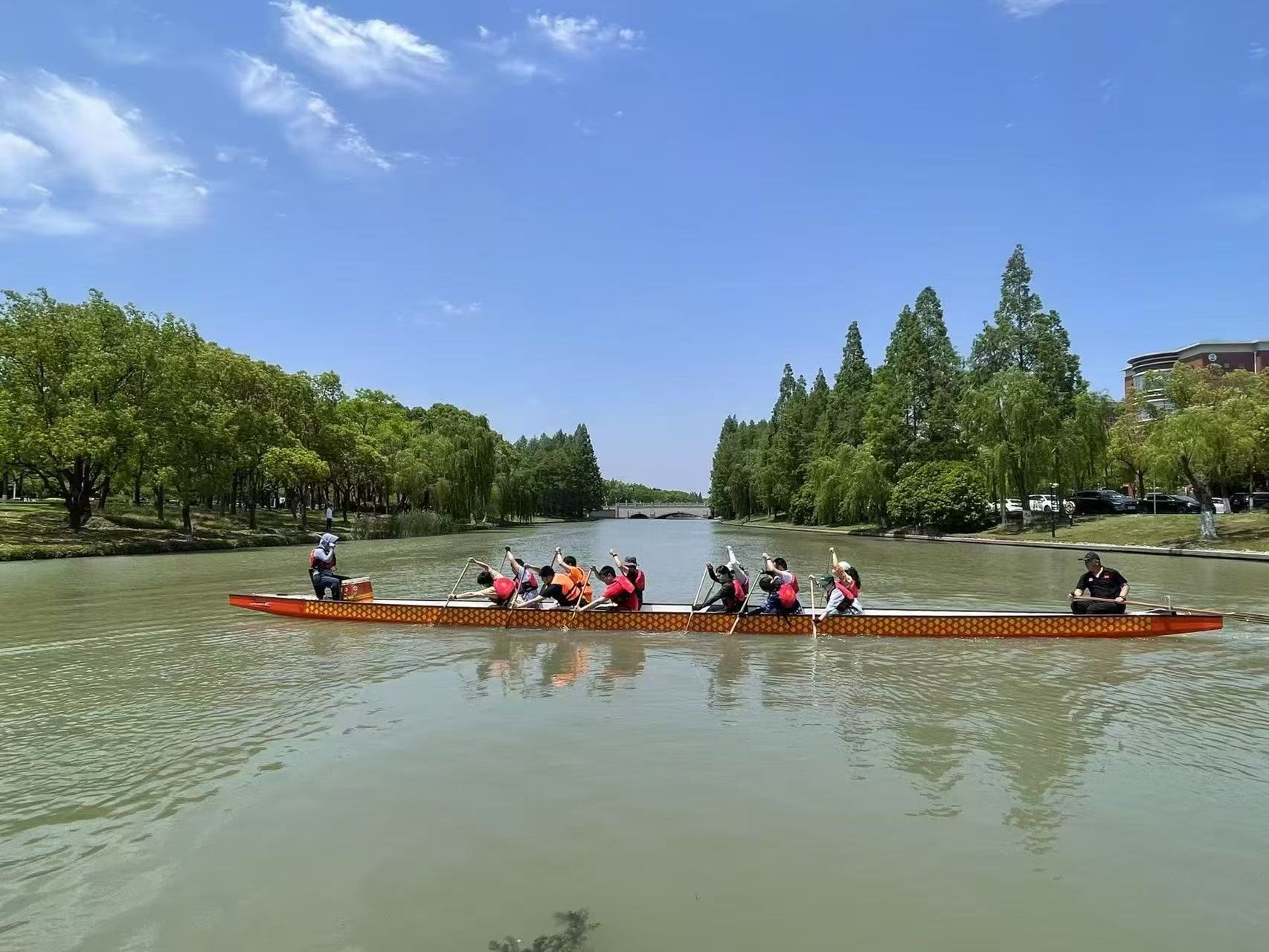 备赛期间,学院工会精心组织,积极动员报名。在队长车驰东老师的带领下,老队员们耐心传授握桨姿势、划水节奏等技巧,新队员们则从零开始,反复打磨动作。从 “各自为战” 到 “整齐划一”,逐渐凝聚成一支默契十足的团队,为比赛奠定了坚实基础。