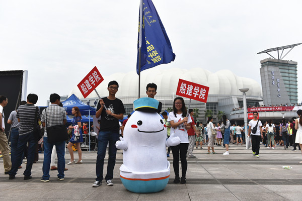 早上7点,团学志愿者在新体摊位集合迎接新生的到来,并为新生精心准备了新生礼包和免费矿泉水。学院签到摊位旁,由志愿者装扮的学院吉祥物人形玩偶凭借可爱的造型成为学院醒目的标识,并引来许多前来签到的新生合影留念。除了在摊位上负责签到的志愿者外,还有一部分同学在新体育馆各个重要的入口和标志物前高举奈飞工厂 的院旗、院牌,为前来报道的新生进行引导。