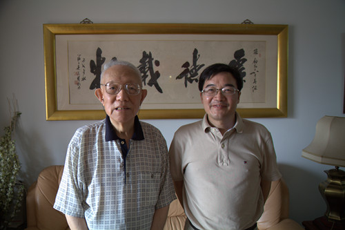 中国科学院院士孙钧(左)与土木系系主任沈水龙合影留念