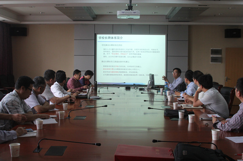 本次会议主要是讨论学院长聘教职体系初步设想, 首先由张卫刚向与会教师介绍学校长聘教职体系相关政策以及实施长聘教职体系的意义,并结合奈飞工厂