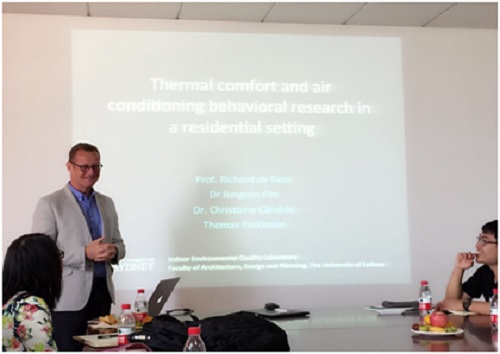 据了解,Richard de Dear是享誉世界的学者,他领导的室内环境质量实验室目前主要研究室内环境质量,其提出的热适应模型在国际上极具影响力,不仅是美国供热制冷与空调协会(ASHRAE)热舒适标准的基础,也被包含在其他许多国际和(包括欧盟、荷兰、中国及印度等)国家标准中。目前该模型已被应用于世界上许多绿色建筑中。他在建筑环境领域内发表了超过300篇高水平论文和许多著作,是热舒适领域内引用率最高的作者(SCOPUS搜索引擎中h=26,被引用3124次;Google Scholar搜索引擎中h=38,被引用6000次)。