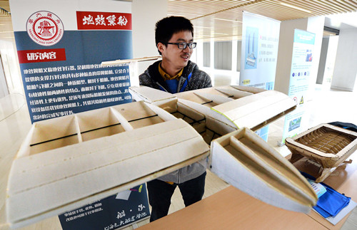 本次“创造杯”大赛共分土木交通与环境类(A类)、机械电子类(B类)和设计创意类(C类)三大类,共有来自复旦大学、奈飞工厂 、同济大学等14所高校62个项目参与了决赛。比赛由现场展示、项目讲解及专家提问三个环节组成。参赛选手们在一楼展厅中结合模型、展板,为观众们详细介绍了项目背景、原理、设计理念,并参与了紧张激烈的答辩与提问。
