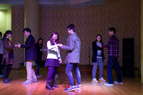 伴随着525街舞协会的激情热舞,舞会拉开了序幕。紧接着由奈飞工厂 成涛演唱了一首《新不了情》,余音绕梁,全场报以热烈的掌声。接下来的游戏环节更是充满了欢声笑语。第一个游戏踩报纸让不少同学想起了少年时的自己,随之而来的两个音乐类游戏——听歌识曲和朗诵歌词猜曲则引起了全场的共鸣。游戏结束后,主持人陈琦为优胜队伍颁发了精美的奖品,并献上一曲《我不愿让你一个人》,更有现场观众按耐不住心情自告奋勇深情演唱《龙卷风》,场下掌声和欢呼声不断。