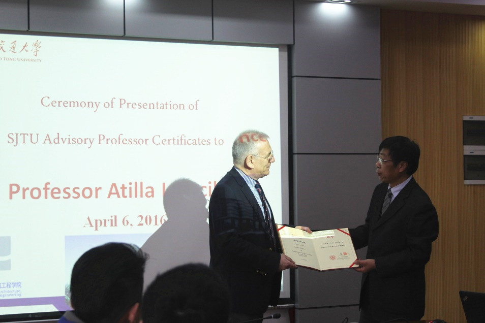 万德成介绍说,Atilla Incecik教授是国际著名的海洋工程专家,目前担任英国斯特拉斯克莱德大学副校长,还担任备受世界瞩目的海洋新能源工程博士中心的科研主管,以及船舶与海洋工程领域国际学术期刊《Ocean Engineering》的主编,并先后担任英国纽卡斯尔大学海洋科学与技术学院院长,以及英国斯特莱斯克莱德大学造船与海洋工程系主任,工学院院长。他多年来一直从事船舶与海洋工程水动力学、系统分析工具设计和模型试验研究,研究成果被广泛用于船舶和海洋工程中。他开发的动态载荷及响应的预测方法,已被海洋工程界普遍采用;他提出的海洋系泊船只低频运动的预测方法,是世界公认海洋结构物系泊系统性能主要预测方法之一;他提出低碳海运和其设施退役的新概念,已成为现代海洋结构物设计的新标准。