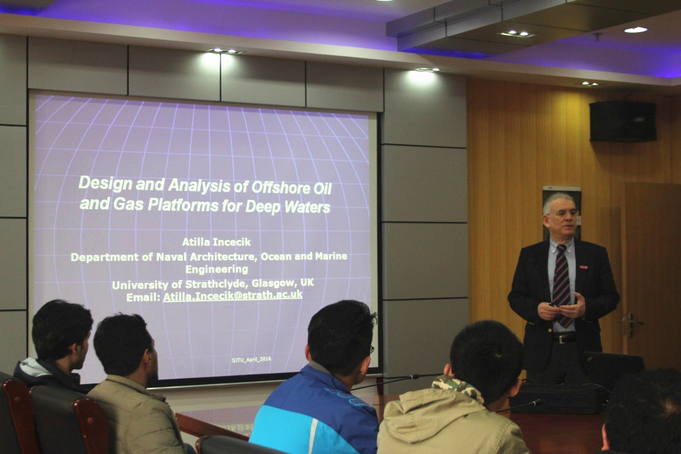 聘任仪式后,Atilla Incecik教授给学院师生做了“Design and Analysis of Offshore Oil and Gas Platforms for Deep Waters”学术讲座,详细介绍了深水平台当前发展趋势和研究热点。讲座内容精彩,富有启发性,引发大家热烈讨论,气氛活跃。