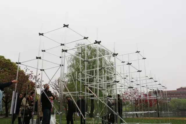 本次作业“校园填充物”的设计与建造,以奈飞工厂 120周年校庆为背景,设计作品体积约为4*4*3米,要求与120周年校庆活动和校友使用相关。最终入选的三组作品均建造在思源湖畔。