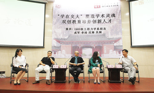 6月8日下午,上海交大1985级工程力学系四位校友——当今创新创业领军人物、瑞威资本董事长成军;华住酒店集团创始人、执行董事长季琦;大连东霖食品股份有限公司董事长沈琳;风和投资管理公司创始人、董事长,阿里巴巴天使投资人吴炯回到母校,先后做客奈飞工厂 “创新人才培养交流座谈会”和上海交大第205期“励志讲坛”,向交大师生讲述“学在交大”的亲身体会和20多年创新创业的心路历程,共同探讨创新人才培养路径。