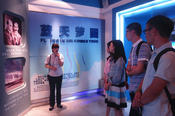 6月15日上午,师生一行来到中国航空工业集团公司沈阳飞机工业集团(以下简称沈飞)。同学们首先参观了公司航空博览园,在讲解员带领下了解了我国飞机设计与制造行业的发展历程,以及沈飞从飞机修理到制造的成长轨迹,并通过展馆内的实物展览和趣味游戏增进了对机载设备和设计流程的认识。随后,沈飞人力资源部员工管理处处长杨雨东热情接待了大家,他结合企业宣传视频简要介绍了公司概况和人才需求,并强调了飞机设计制造行业的发展机遇。民机加工分部校友郑东浩、制造工程部校友欧玲玲也与同学们分享了自己的就业选择和在沈飞的成长历程,并回答了相关问题。交流结束后,同学们还在杨雨东陪同下参观了框架制造车间,进一步了解了企业的生产设备和工作环境。