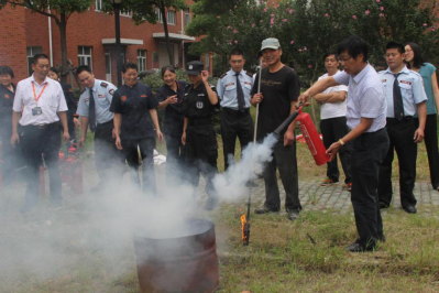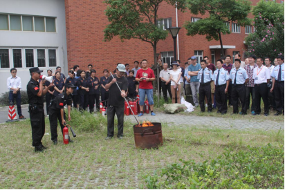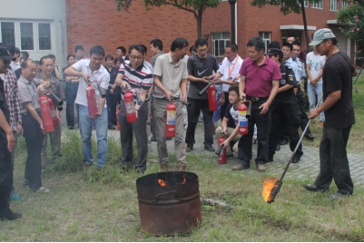 演练指挥部对演练场地的选定、实操设备的准备做了大量工作,为演练的顺利开展做了充分准备工作。彭涛在演练前进行了动员,他介绍了本次演练的意义及重要性;校保卫处消防科同志进行了灭火器使用方法并进行了操作,每个着火点都安排人员给予专业指导。