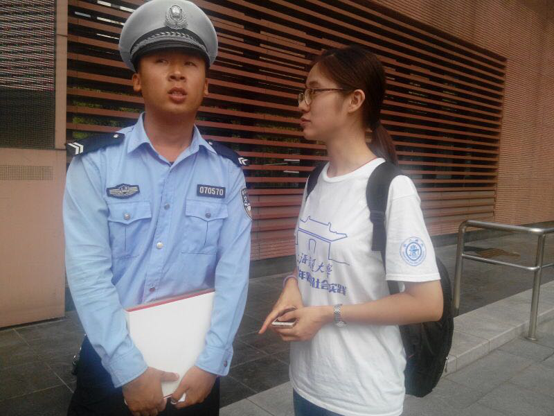 实践团成员访谈“无车日文明出行好市民奖”获得者(普陀区交通辅警)