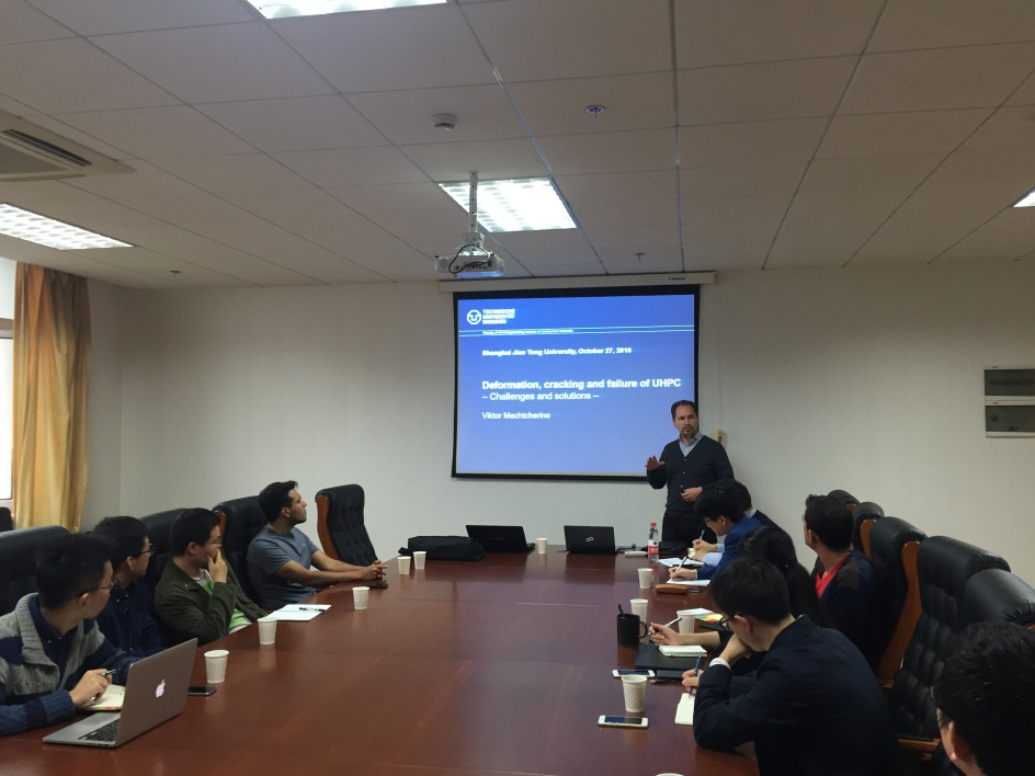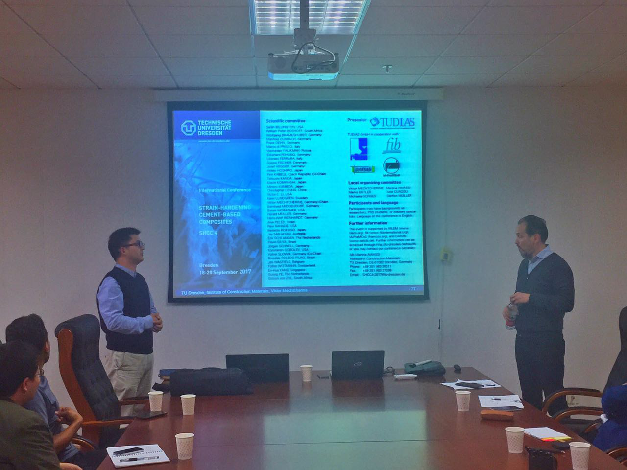 报告会结束后,V. Mechtcherine与学院师生就报告内容和类水泥材料科学领域的众多问题进行了充分的交流和探讨,同时就未来在绿色建材与新型结构方向上可进一步开展的合作研究进行了积极的讨论。