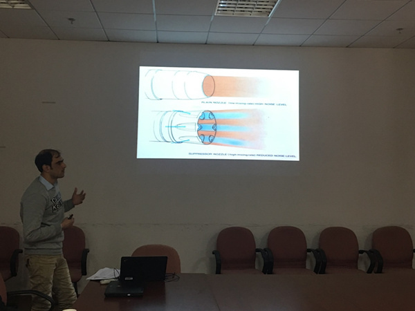 所有参加学术沙龙的留学生都到齐之后,学术沙龙就紧锣密鼓地开始了。第一位主讲人是来自船舶与海洋工程系的留学生Muhammad Ishaq,他分享的主题是Eigenfunction Mode Matching for a Bifurcation Waveguide Problem,是船工领域里的波浪相关问题,专业性比较强。留学生们虽然来自各个专业,但都认真地聆听了报告,也对报告中的一些问题提出了自己的疑惑。